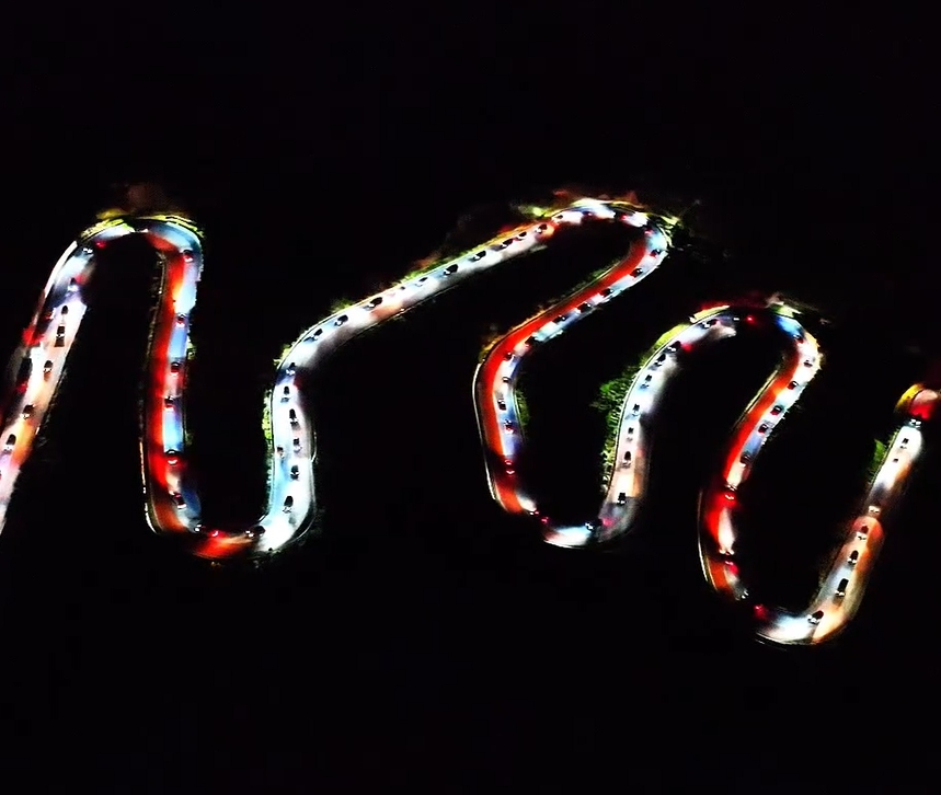 国庆期间,位于青海省海东市互助土族自治县境内的十二盘路段宛如一条火龙盘踞在群山之巅。夜晚来临,车灯穿梭交织,绘制出一幅动人画卷。这里,你既是欣赏风景的旅人,同时也成为他人眼中的一道独特风景。