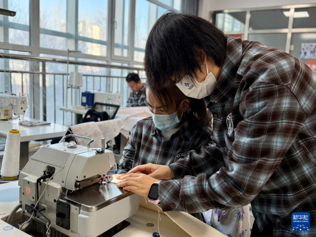 19岁的马亚楠是智力残疾三级,综合能力相对较好,在缝纫组学得快干得好。现在她是37岁吴英英的“小老师”,缝纫机前两人并排坐着,缝制过程中马亚楠在旁一遍遍示范,丝毫没有松懈。