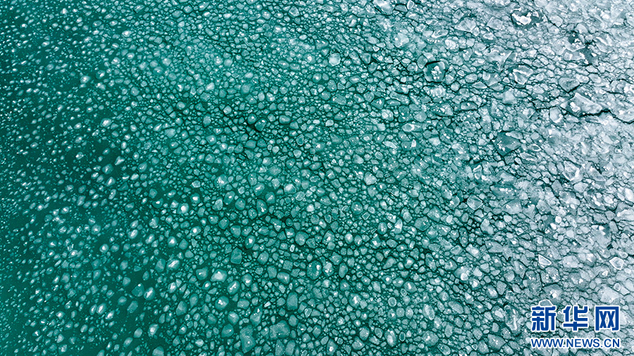 航拍青海湖冰面上的碎冰。新华网发(薛蒂 摄)