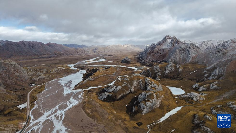 这是1月30日在青海省玉树藏族自治州杂多县境内拍摄的冬景风光(无人机照片)。新华社记者 齐芷玥 摄