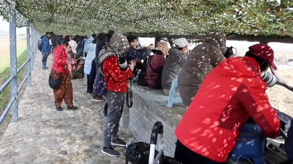 为了破解湖区“人鸟争食”矛盾,当地对因保护湿地和候鸟而遭受农作物损失的群众进行补偿,鼓励村民把未收割的稻田让出来作为候鸟的“食堂”。随着来的候鸟越来越多,观鸟经济兴起,不少村民也从中受益。