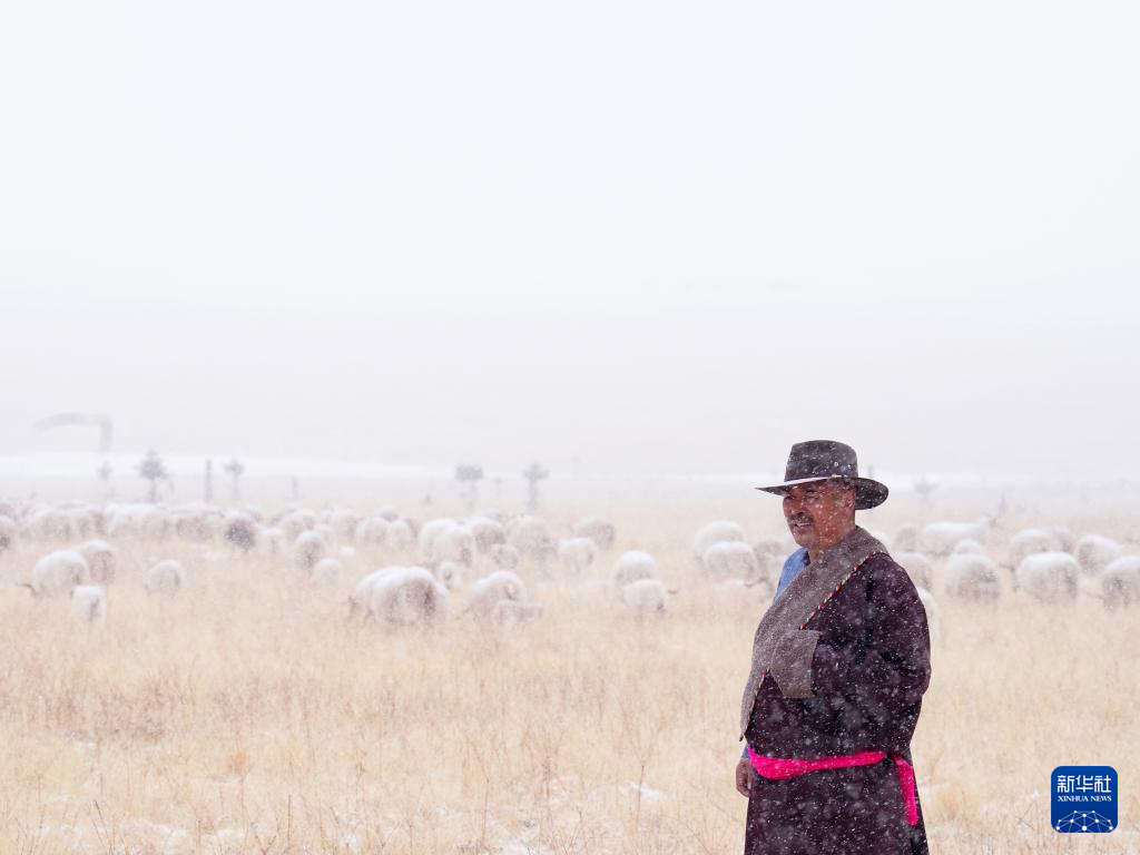 羊群乘车从河西走廊驶来略显萎靡,但经过近半年休整的祁连山草原牧草长势良好,新生的羊羔放归草原时活力满满,春雪中,牧民东宝充满了希望。