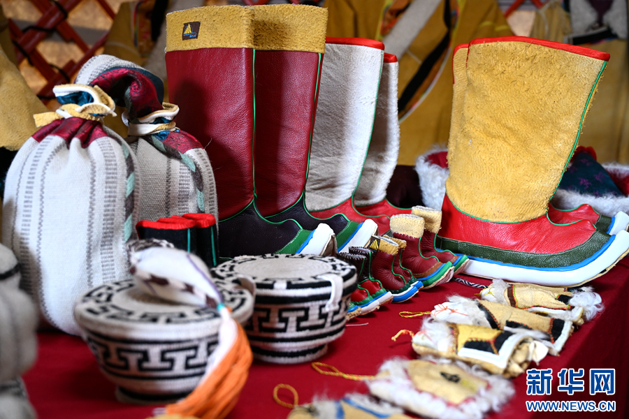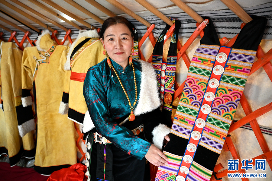 活动现场,非遗传承人拉毛措展示藏族精美服饰。新华网 鱼昊 摄