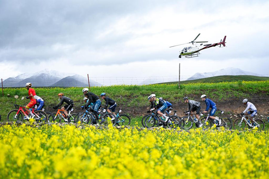 (资料照片)第24届环青赛,参赛选手在比赛中骑行。新华社记者 张龙 摄